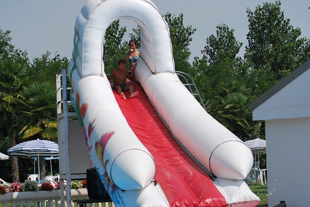 Per i più giovani la vasca con gli scivoli e i tappeti elastici.